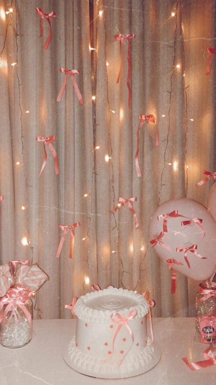 Tema coquette menghadirkan kesan manis dan romantis. Dominasi pita-pita pink pastel membuat dekorasi terlihat feminin dan anggun. Tambahkan lampu string dengan cahaya hangat untuk memperkuat suasana romantis.