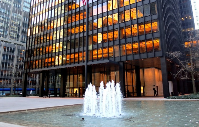 Seagram Building karya Ludwig Mies van der Rohe dan Philip Johnson menghadirkan modernisme New York yang bersih, rasional, dan elegan. Fasad kaca dan struktur baja yang tegas membentuk citra kota yang sophisticated, selaras dengan dunia sosial kelas atas yang digambarkan dalam film ini.