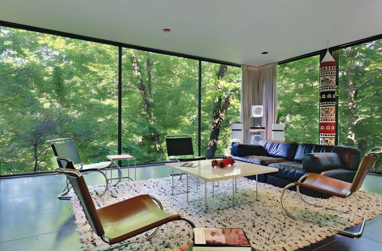 Ben Rose House karya A. James Speyer dan David Haid menampilkan modernisme Amerika dengan struktur baja dan dinding kaca yang transparan. Rumah ini terasa ringan, terbuka, dan futuristik, menjadi kontras visual terhadap rutinitas sehari-hari yang ingin ditinggalkan oleh tokoh utama.