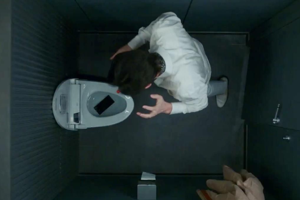 5. Selain itu, ponsel milik Hyeon Jun juga terjatuh ke dalam kloset akibat kejadian tak terduga tersebut.