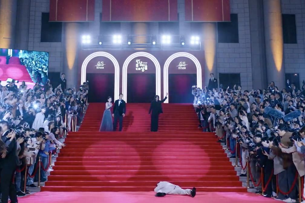 6. Di pertemuan keempat, Wi Jeong Sin berhasil membuat Hyeon Jun jatuh dari tangga saat sedang berjalan di red carpet acara Penghargaan Seni Geumsang.