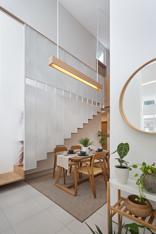 Di rumah dengan ruang terbatas, tangga bisa dirancang tidak sekadar sebagai akses ke lantai atas, tetapi juga berfungsi sebagai partisi antar ruangan. Dengan penempatan yang strategis, tangga ini dapat membatasi ruang keluarga dan area makan tanpa perlu menambah furnitur atau dinding tambahan. Desain tangga terbuka atau menggunakan material transparan akan menjaga sirkulasi cahaya tetap lancar sekaligus memberikan kesan luas. Selain efisien, solusi ini menciptakan estetika yang modern dan rapi, memaksimalkan fungsi setiap sudut rumah.