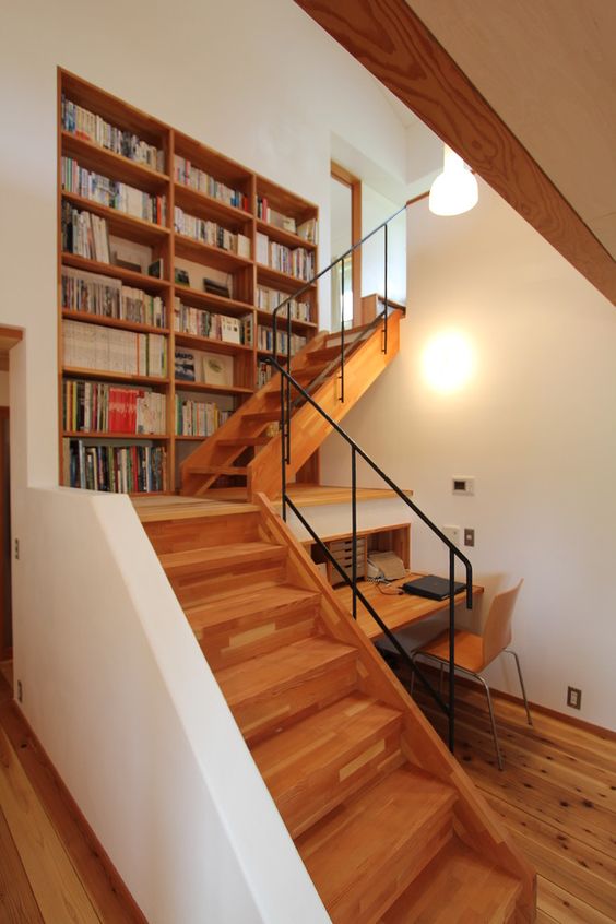4. Desain Tangga dengan Sudut Baca dan Rak Buku