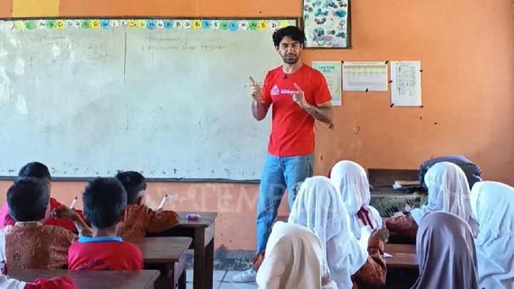 Aktor, Reza Rahadian, mengajar di SD Inpres Bala, Kecamatan Wera, Kabupaten Bima, Nusa Tenggara Barat, 7 Agustus 2025. Tempo/Dede Leni Mardianti.