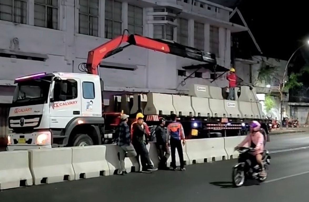 Pemkot Surabaya Pasang Barrier Beton di Jalan Basuki Rachmat