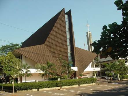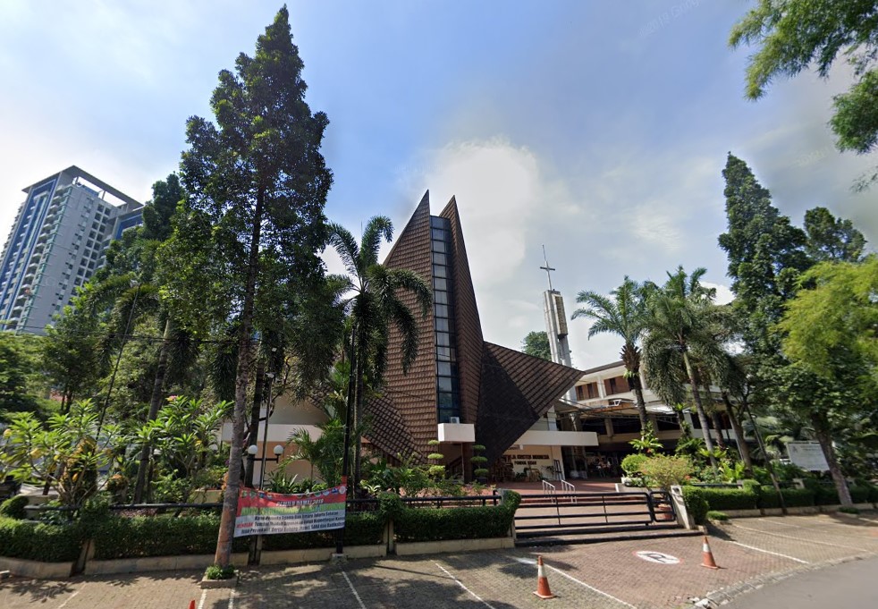 Gereja ini menonjol lewat arsitektur modern tropis yang bersih dan terukur. Massa bangunan disusun tegas dengan permainan bidang geometris dan bukaan besar untuk cahaya alami.