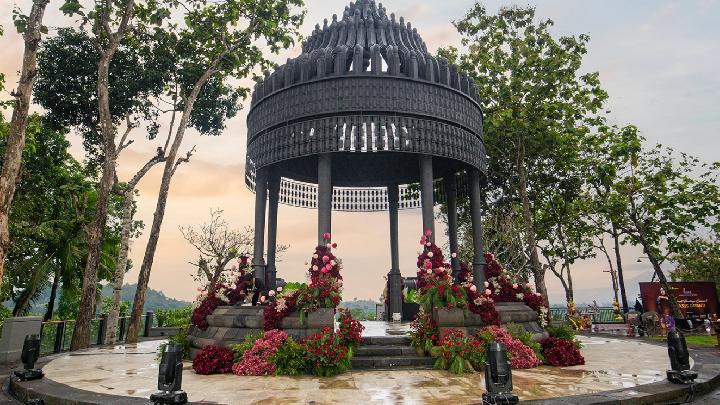 Salah satu lokasi favorit untuk acara pernikahan adalah Crown Kinandari. Lokasi ini memiliki desain altar yang menyerupai mahkota raja dengan kubah yang didukung oleh tujuh tiang. Kubah tersebut menjadi daya tarik tersendiri bagi pengantin yang ingin suasana pernikahan megah. Yang unik, altar ini menghadap langsung ke Candi Borobudur. Pengantin tidak perlu menambahkan latar panggung yang mencolok karena Candi Borobudur sendiri sudah menjadi latar yang sempurna. “Crown Kinandari bisa digunakan untuk akad nikah atau pemberkatan karena atmosfer magisnya,” kata Ermie.