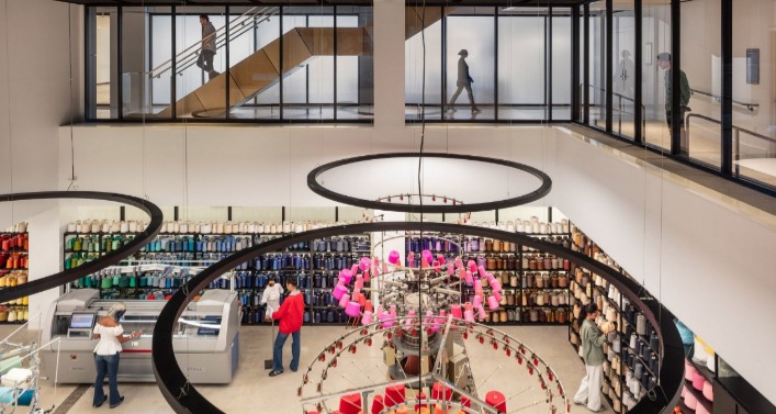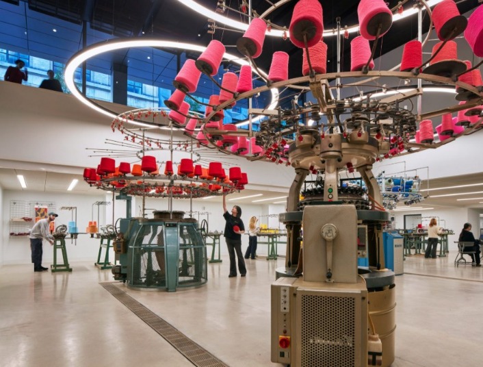 Dalam bangunan ini terdapat sekitar 26 ruang belajar dan studio yang dirancang untuk fleksibilitas dan efisiensi energi. Fitur unggulan lainnya adalah “knitting lab” atau laboratorium rajut dan tenun yang disebut terbesar di sebuah kampus di Amerika Serikat. Lab ini sengaja ditempatkan di lantai bawah dengan visibilitas dari jalan untuk memperkuat konsep “lihat proses, bukan hanya hasil”.