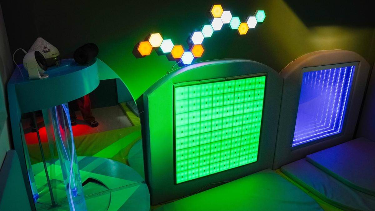 Ruang Snoezelen: Ruang terapi sensori berbasis cahaya, suara, dan aroma untuk relaksasi anak.