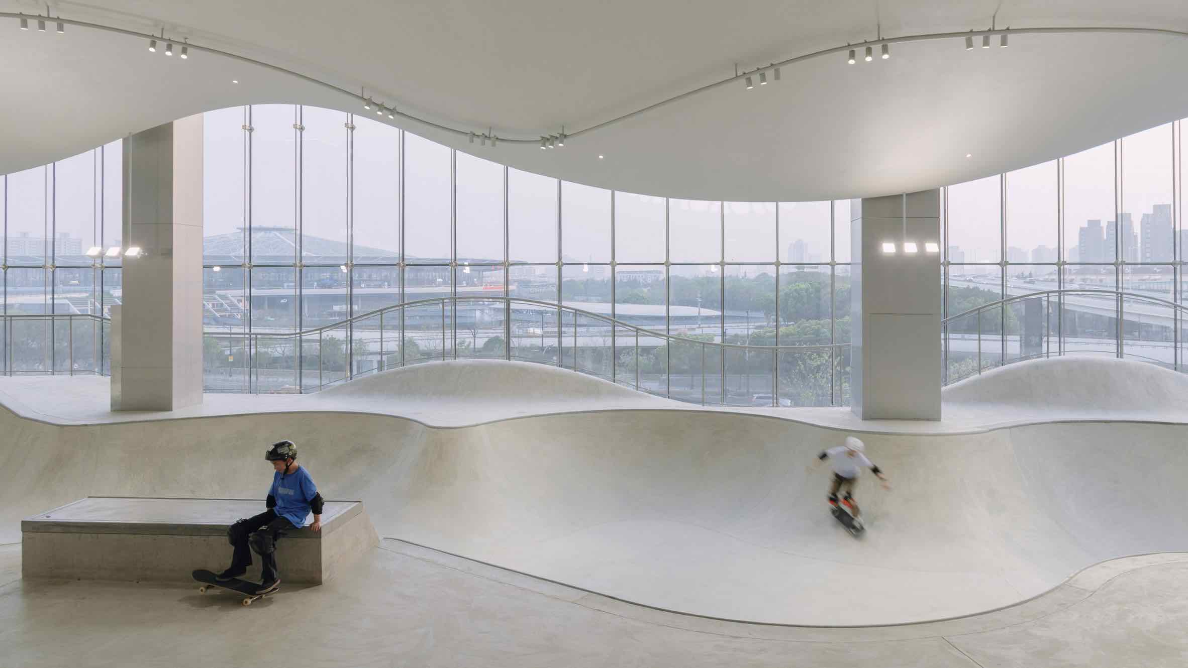 AAN Architects baru saja menyelesaikan proyek yang ambisius dan penuh inovasi, sebuah skatepark indoor yang digantung seperti kotak kaca di atas cakrawala kota Shanghai. Proyek ini terletak di distrik Xuhui dengan nama Moreprk Skyline. Desainnya menghadirkan pengalaman skateboard yang benar-benar unik, bukan hanya sebagai arena olahraga, tetapi juga sebagai elemen arsitektural spektakuler yang menyatu dengan lanskap kota.