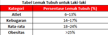1. Tabel Lemak Tubuh Normal untuk Laki-Laki