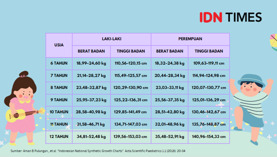 Tabel Standar Tinggi Badan dan Berat Badan Anak Indonesia Usia 6–12 Tahun